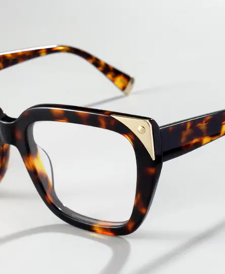 Sophia is a stylish pair of glasses featuring a graceful square-butterfly frame with elegant triangle metal accents at the brow corners. The shiny gold details create a sophisticated look, while logo-engraved metal tips add a luxurious touch. Perfect for social events, vacations, and parties, Grace seamlessly combines fashion and functionality.
