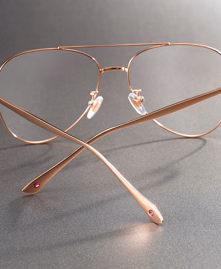 Cher is a 70s-inspired pair of glasses, designed with lightweight titanium temples and sparkling pink rhinestones for a chic touch. The rose gold finish, allowed to pair with UV protection nylon lenses to ensure reliable sun protection. Ideal for casual business environments or elevating your daily fashion look, Cher blends timeless retro style with modern practicality.