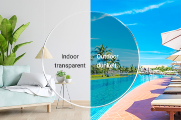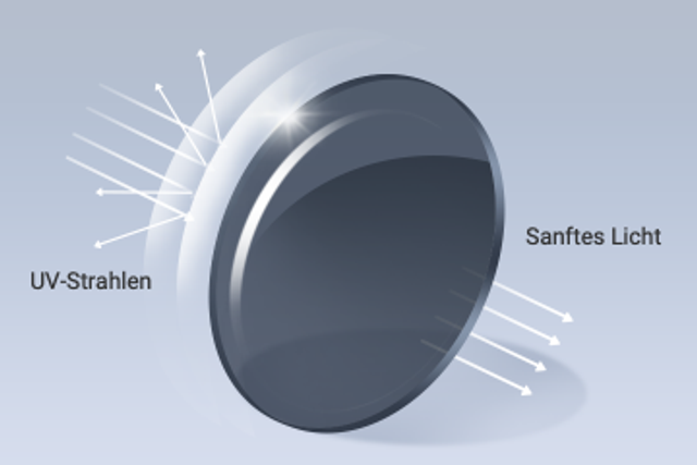 Selbsttönende Brillengläser: Indoor ist es transparent, Outdoor dunkelt die Farbe nach. Filtert schädliche UV-Strahlen heraus.