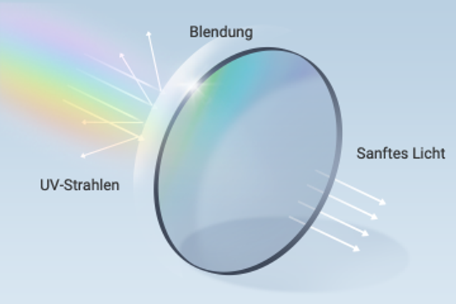 Normale Sonnenbrillengläser: Gleiche Farbe für drinnen und draußen, filtert schädliche UV-Strahlen.