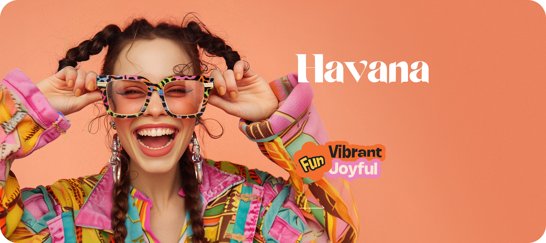 Havana frame radiates enthusiasm and joy with vibrant hues, making an energizing statement.